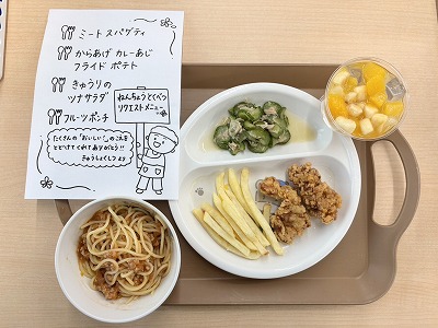 子どもたちに「食べたいメニュー」を聞き、給食の方達が心を込めて作ってくださいました。