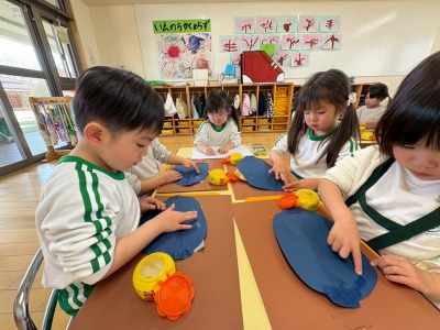 その後は、それぞれのクラスの活動に一緒に参加しました。製作をしていたクラスでは、年少組のお友だちが自分でお道具箱から用具を出す姿を見て、ぽっけ組のお友だちが驚いた表情を見せる場面もありました。