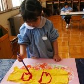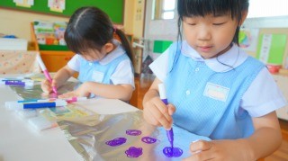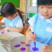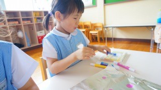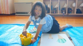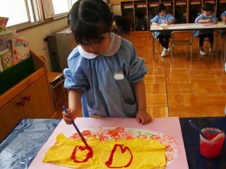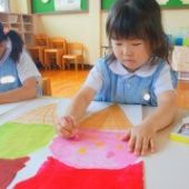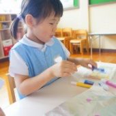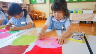 年長さんは製作が大好きです☆年長児になると、一人一人の個人絵の具で絵を描いたりしています!