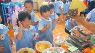 「お母さんにお土産を買う!」、「これ欲しかったんだ!」と思い思いに買い物を楽しみ、持ってきたお買い物袋がパンパンに膨らむまで買っているお友達もいました☆