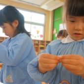 その後は園長先生手作りのおぜんざいを頂きました☆幼稚園中に美味しそうなおぜんざいの匂いがし、3年間食べている年長さんは「早く食べたいなー」と言っていました♪