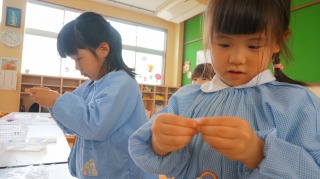 この日は節分会!幼稚園では鬼のお面を作り、みんなの心の中の鬼を追い払いました!