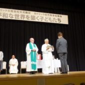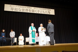 園長先生が勤続55年を迎えられ、大阪高松大司教区の司教様に表彰していただきました!