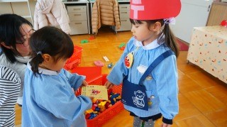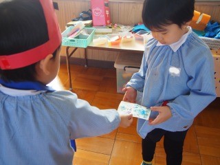 「お手紙どうぞ!!」と、郵便配達当番さんがお手紙を配ると「ありがとう♡」と受け取ったお友達は嬉しくてニンマリ♡