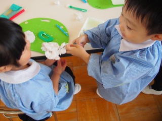 粘土遊びが好きです!丸めたり、伸ばしたり。。。