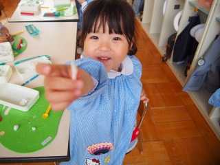 お友達に「アイスどうぞ~」とアイス屋さんごっこをしていました!