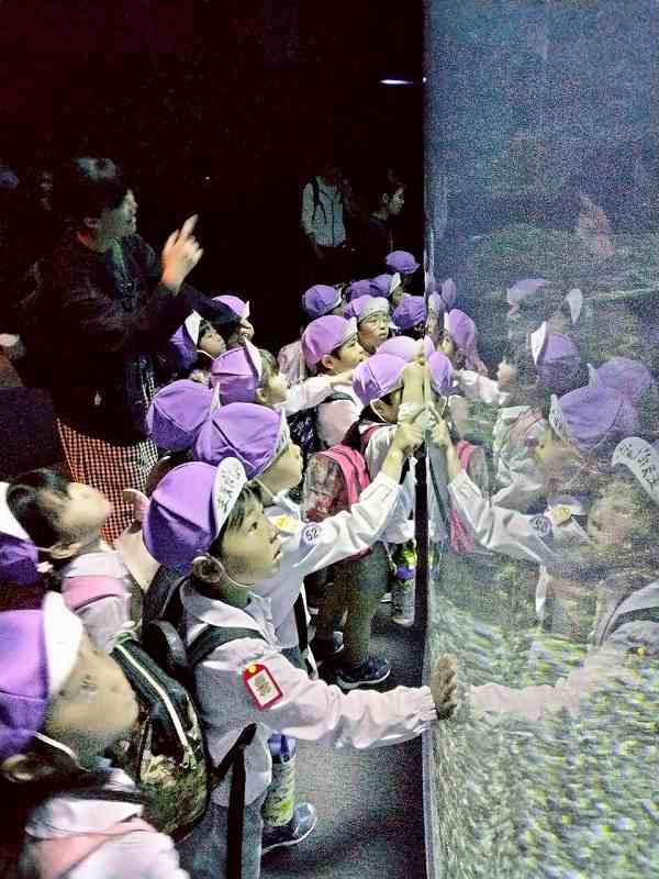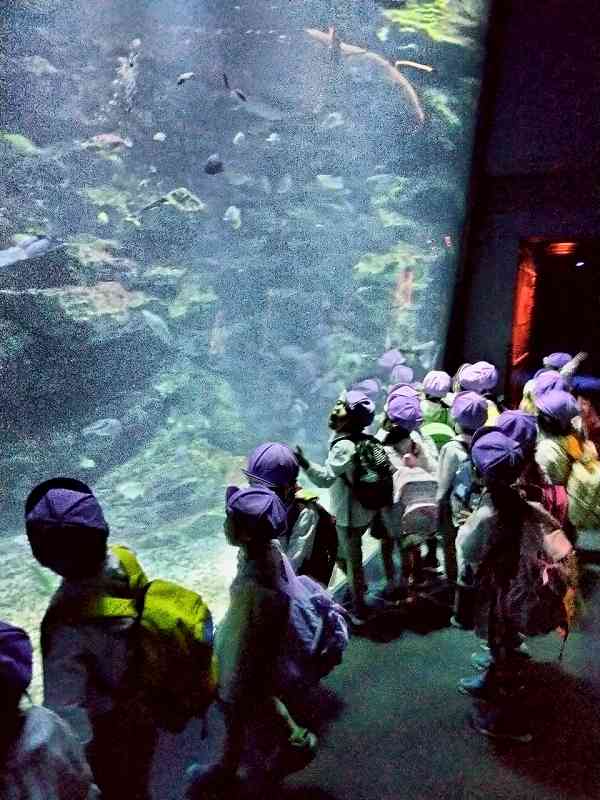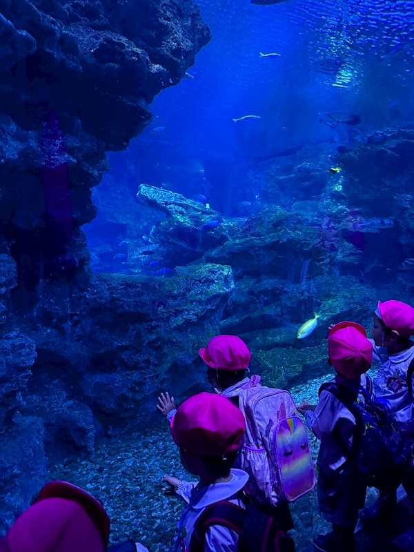 大きな水槽にお魚がいっぱいで、みんな目をキラキラさせていました✨