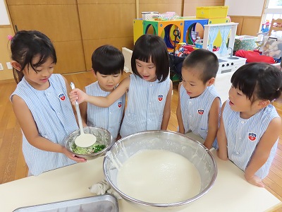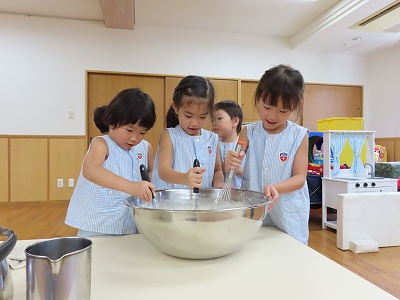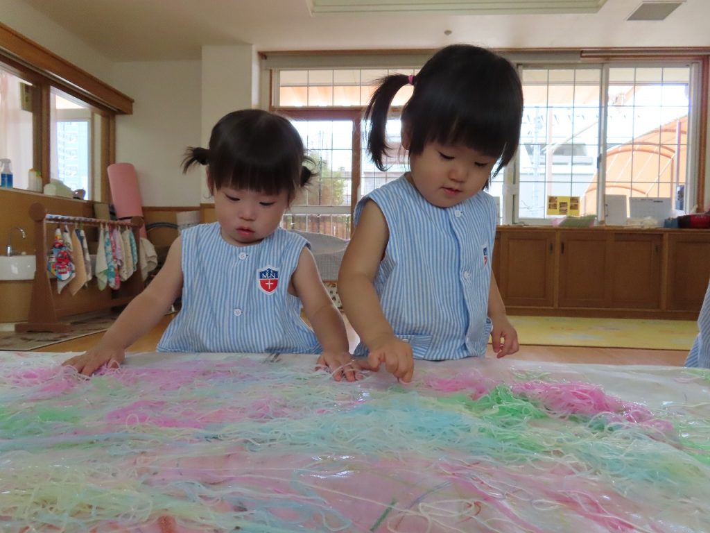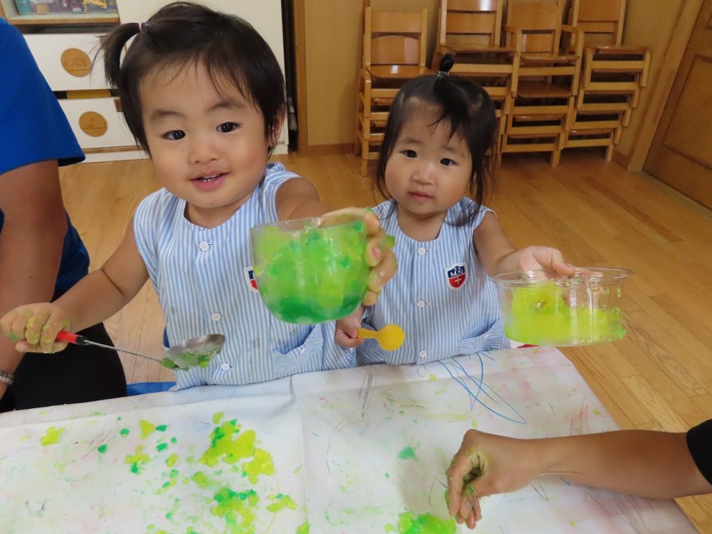 この夏は、たくさんの感触遊びを楽しみました。これからも子どもたちが夢中になって楽しめるいろいろな遊びを取り入れていきたいと思います。