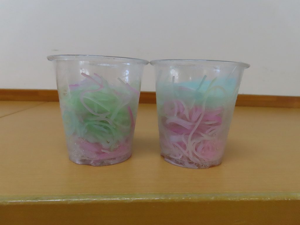 終わるころには子どもたちも寒天に夢中で机から離れる子がいないほどでした。