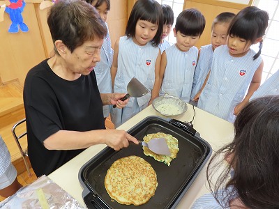 みんなで買ったキャベツでみんなで作るお好み焼きは、とびきり美味しい。おかわりが止まりません。「私は8回目!」「俺は12回目!」