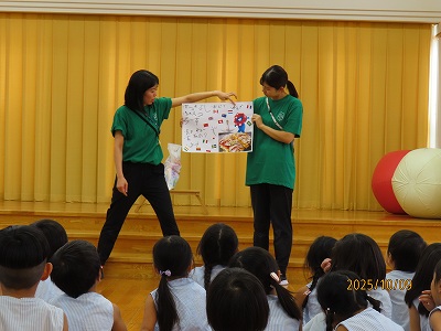 “どのように野菜や果物が出来て、みんなの元に届いて食べることができているのか”また“命を頂く有難さ”、“相手に感謝の言葉を伝える大切さ”を分かりやすく教えて頂きました。
