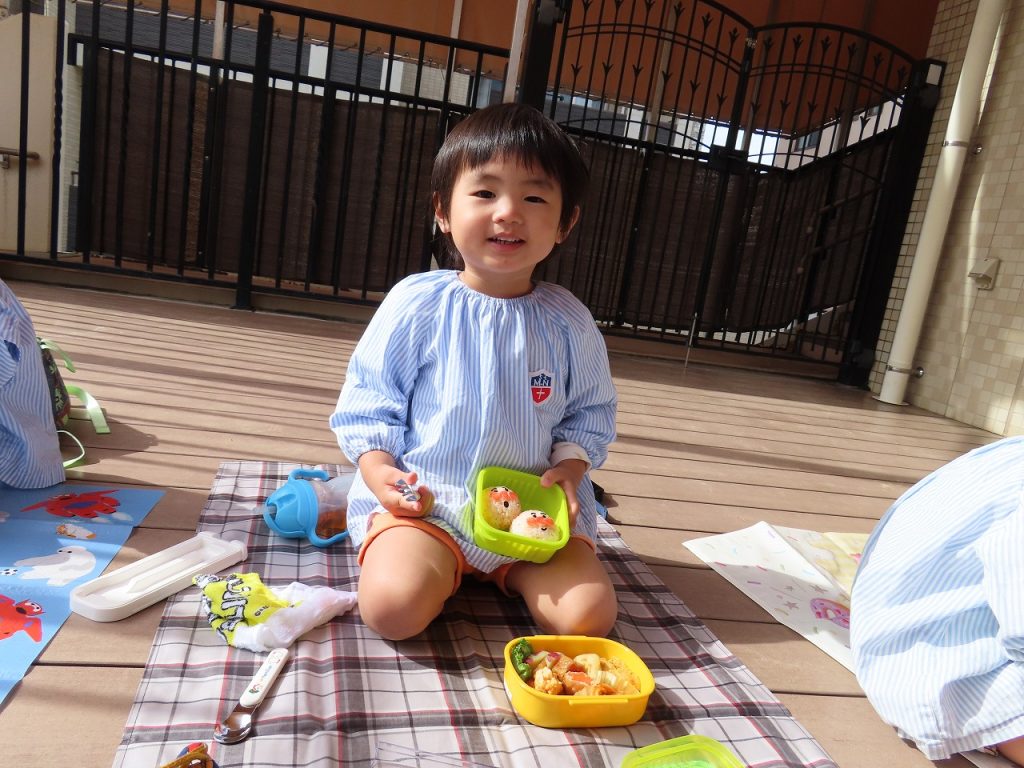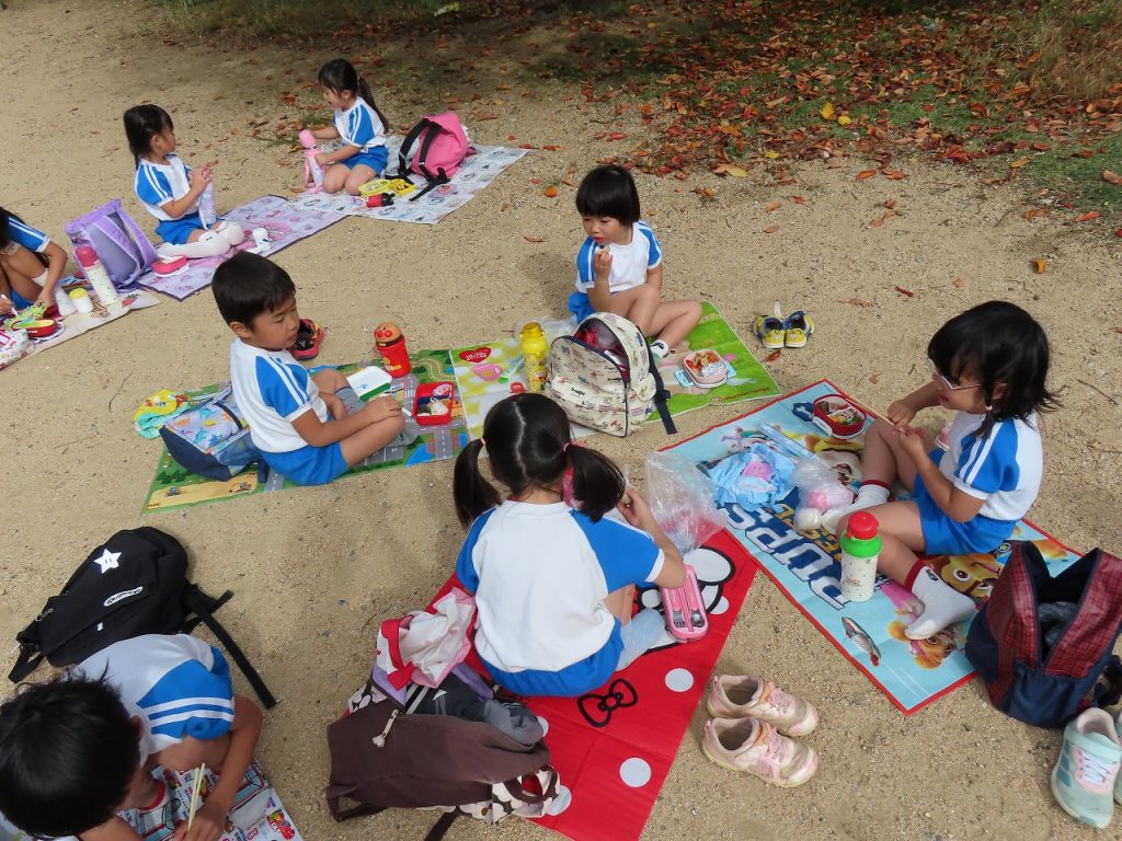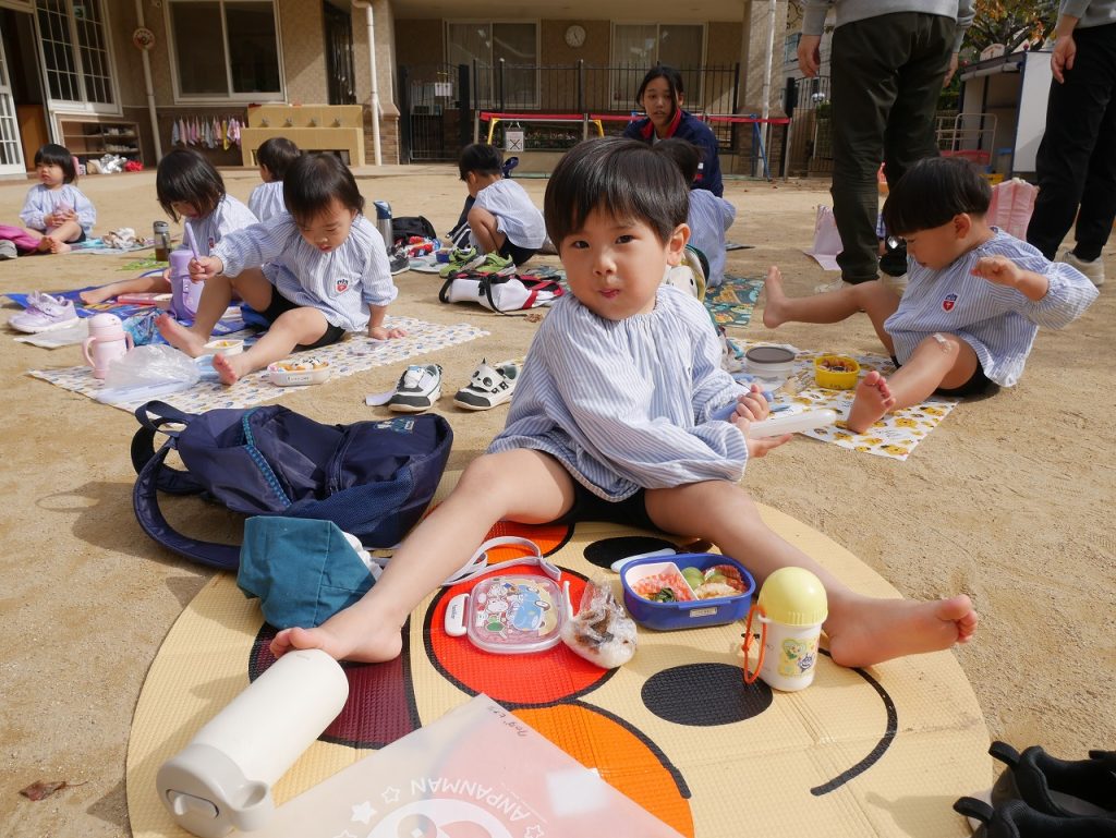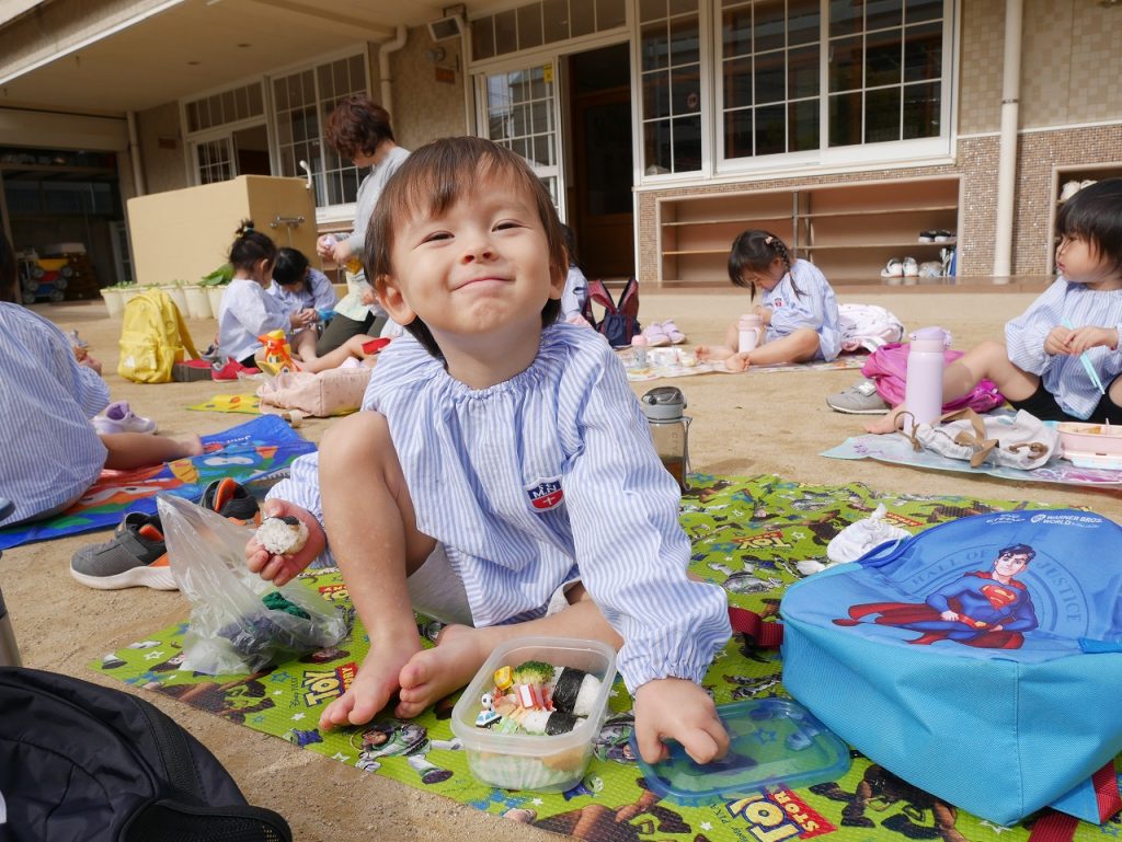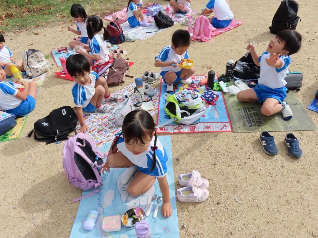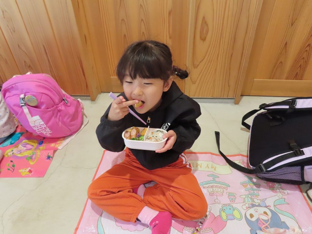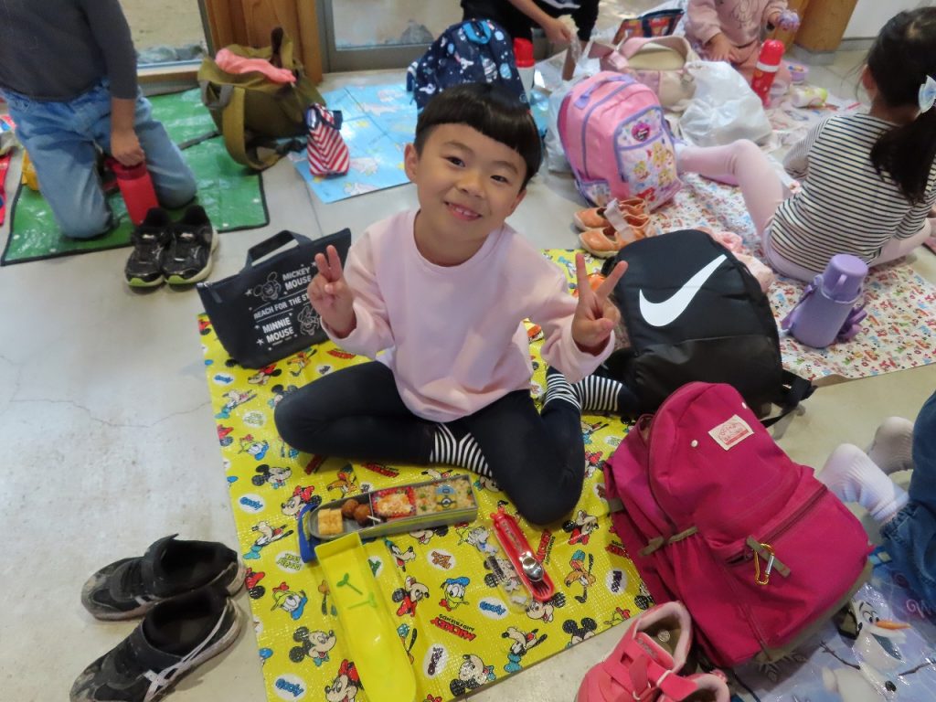 沢山遊んだ後は、園に帰ってみんなでお弁当を頂きました。