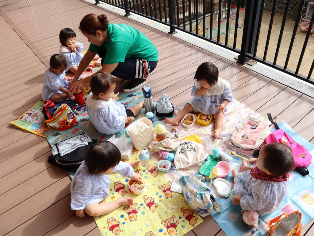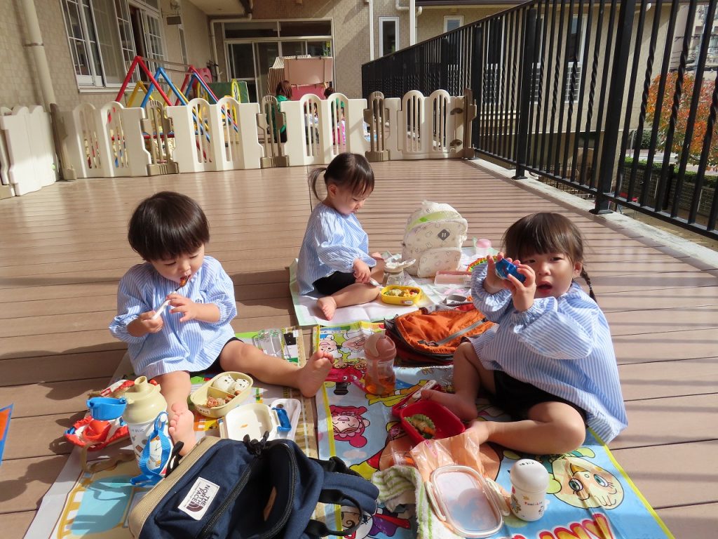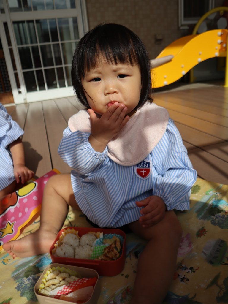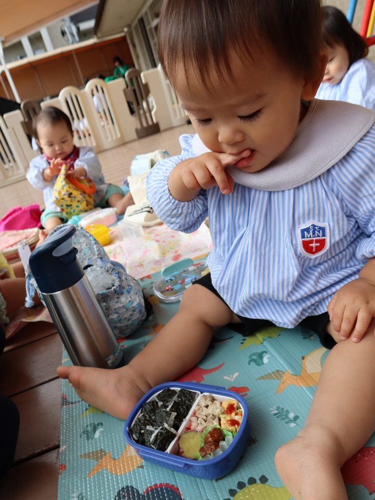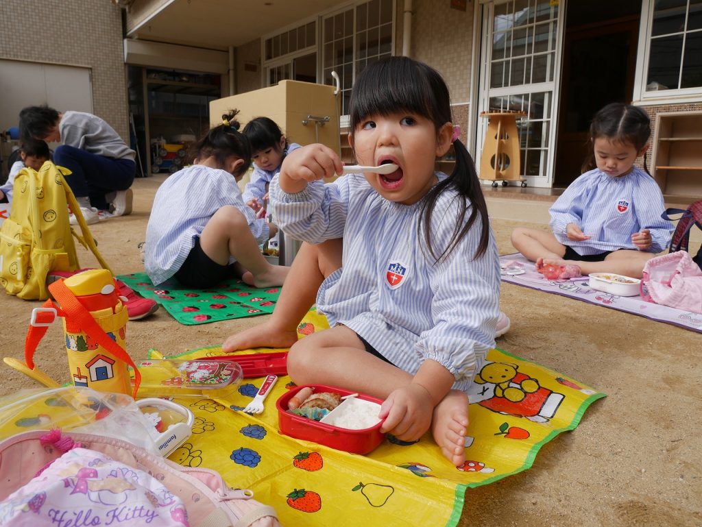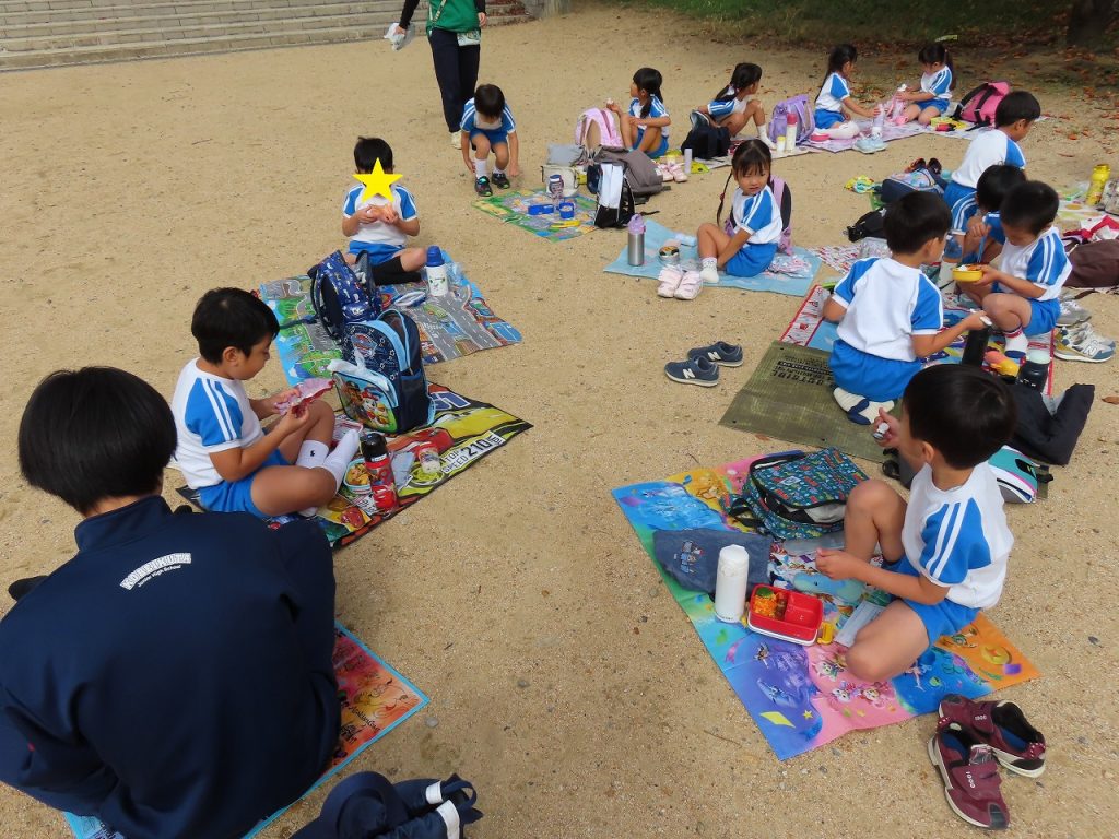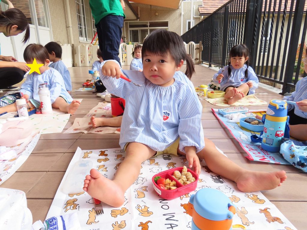 沢山遊んだ後は、園に帰ってみんなでお弁当を頂きました。