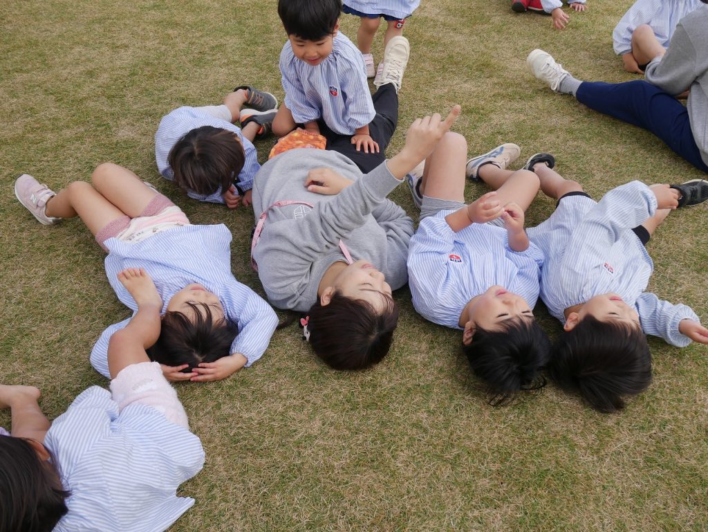 今年の運動会では、『万国博覧会2025~いのち輝く未来へ~』をやり遂げたさくら組とちょうちょ組の子どもたち。打ち上げだーということで・・・