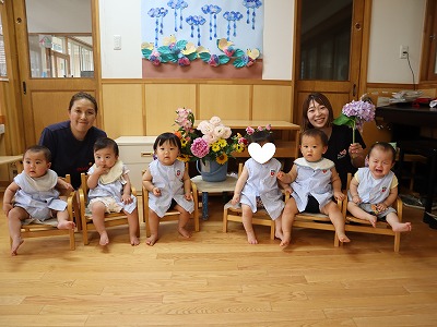 7月。初めての子どもたちも多い中プール遊びが始まり、子どもたちもドキドキワクワクしながら楽しみました。その姿を見てもっとたくさん夏の遊びを取り入れてみよう!と思いました。