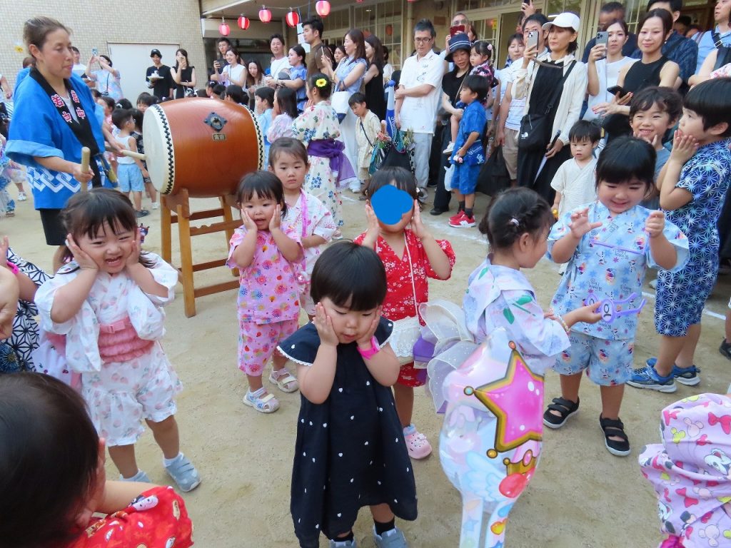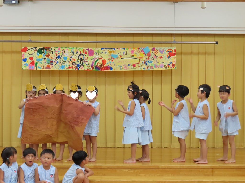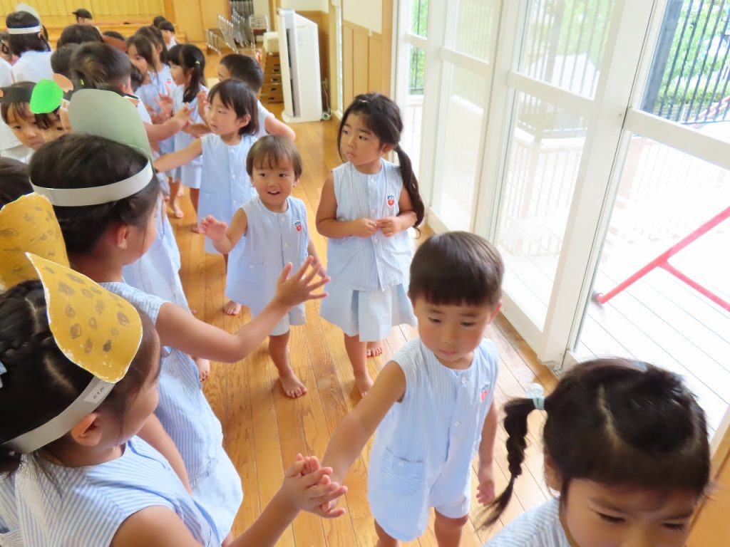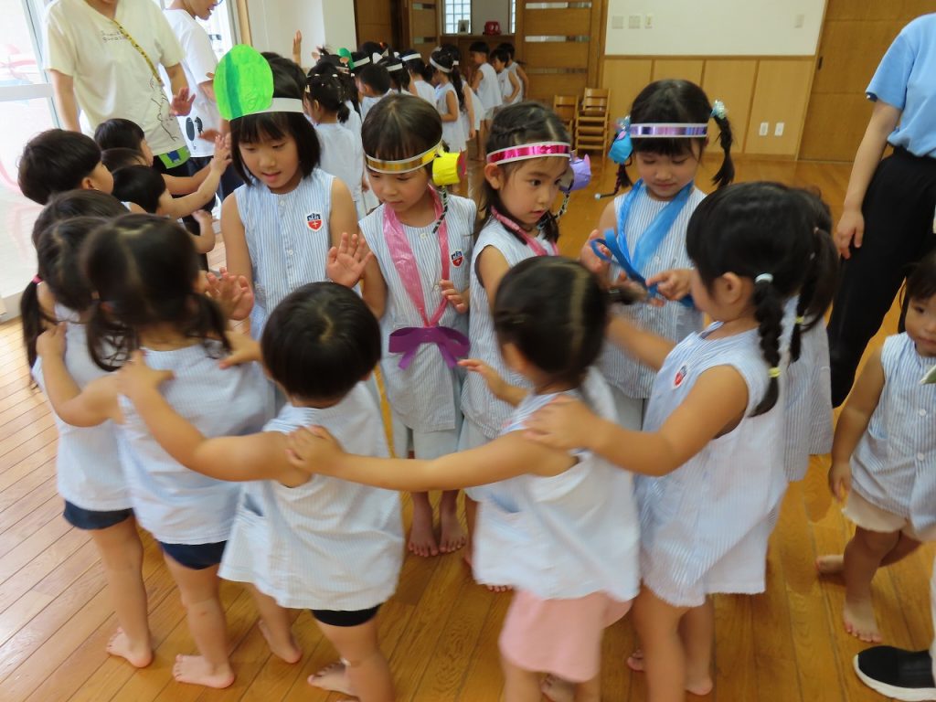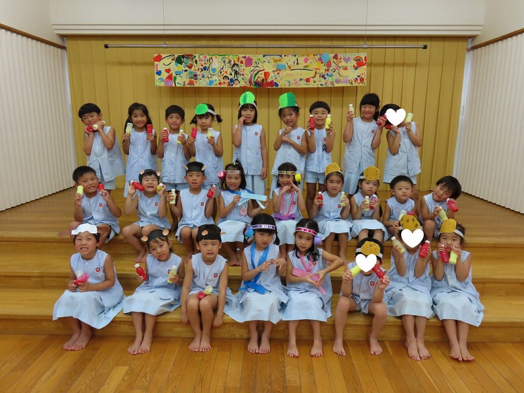 今年の運動会では、『万国博覧会2025~いのち輝く未来へ~』をやり遂げたさくら組とちょうちょ組の子どもたち。打ち上げだーということで・・・