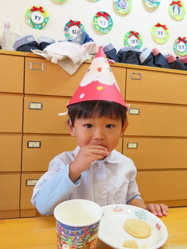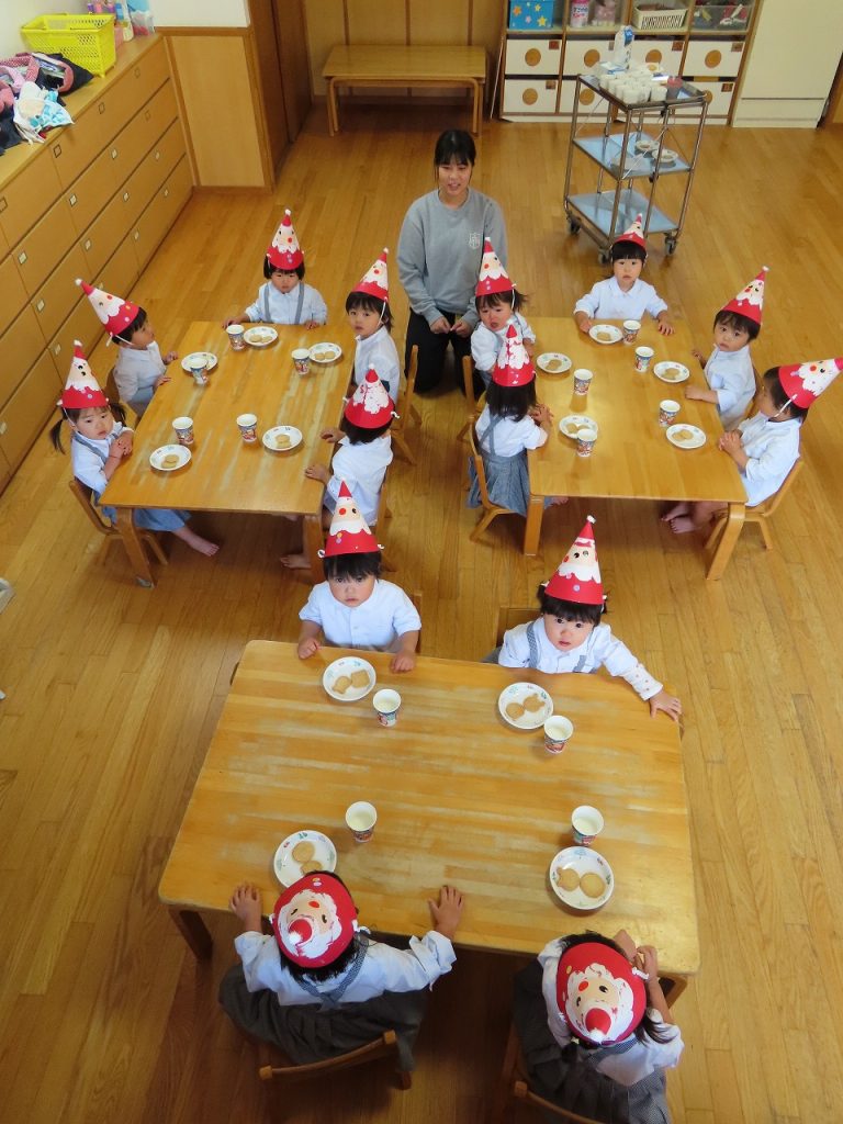 ひよこ組クリスマスパーティー大成功!クッキーも美味しかったしサンタ帽もお気に入り☆楽しかったね!次もなにかお楽しみができるといいな~。