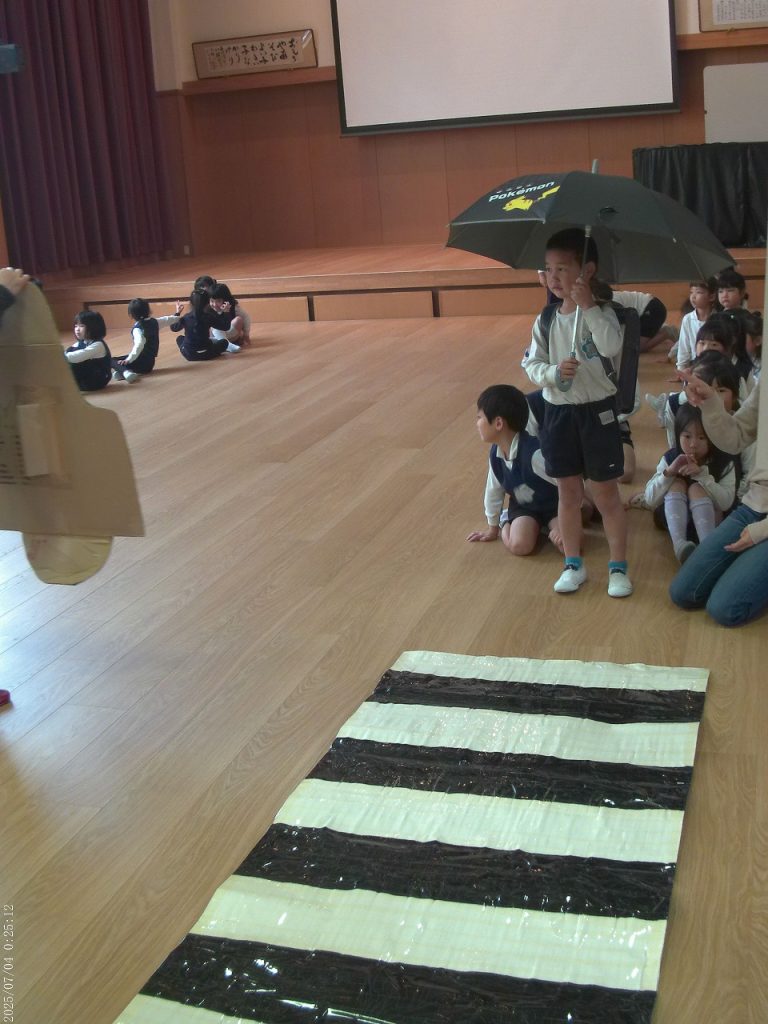 そして傘をさして歩くと視界がとっても狭くなることも体験しました。