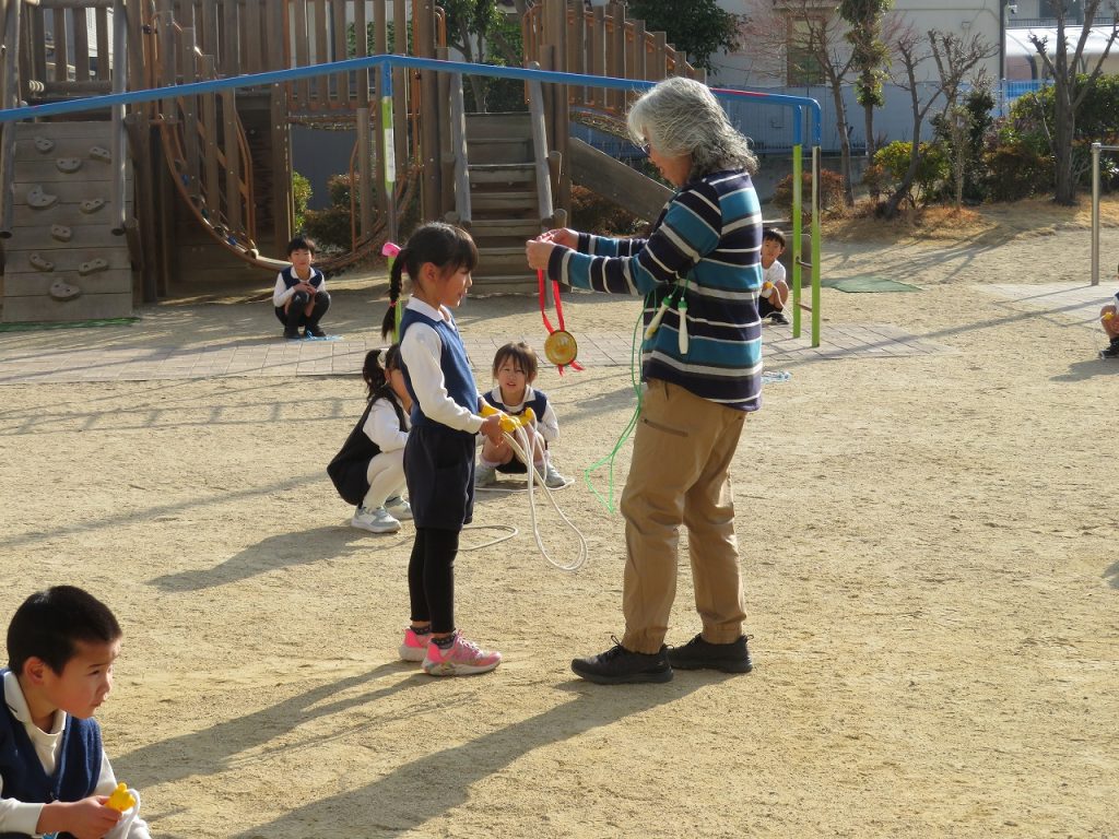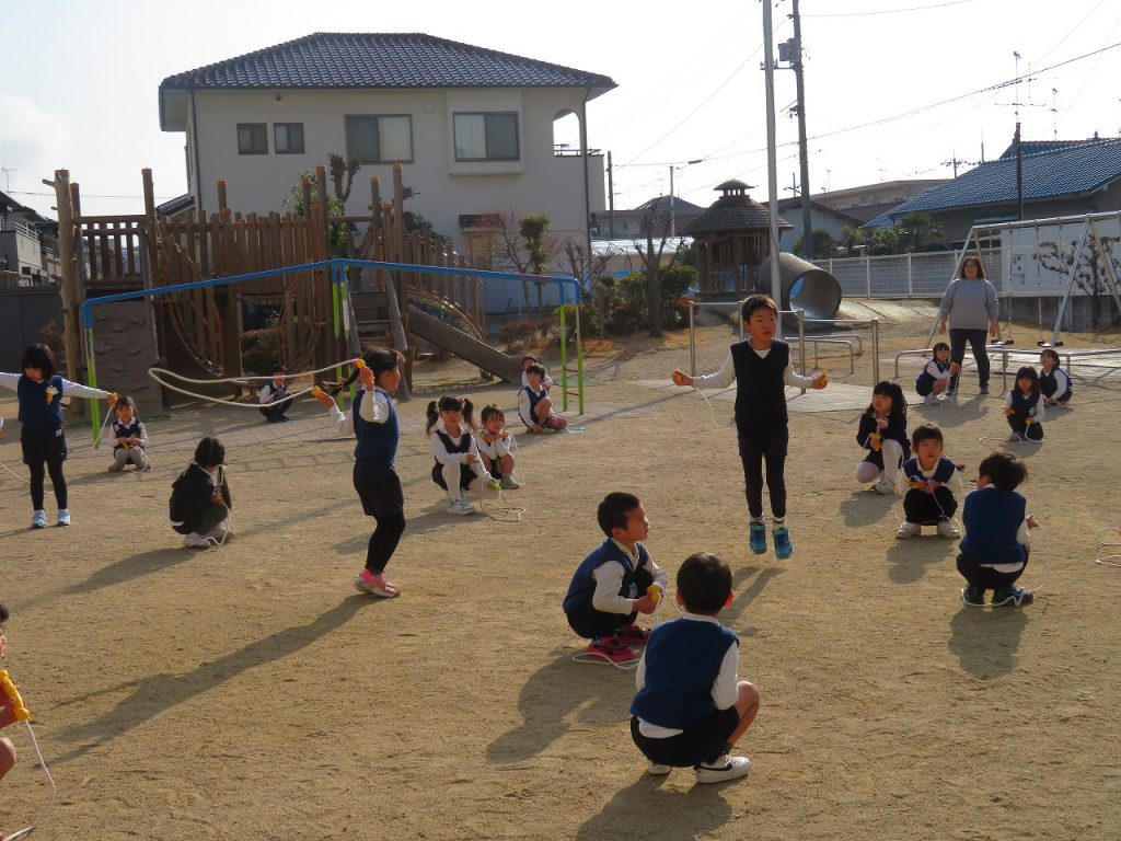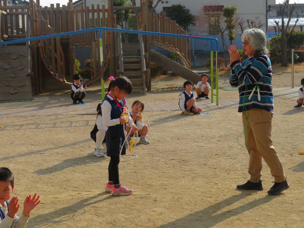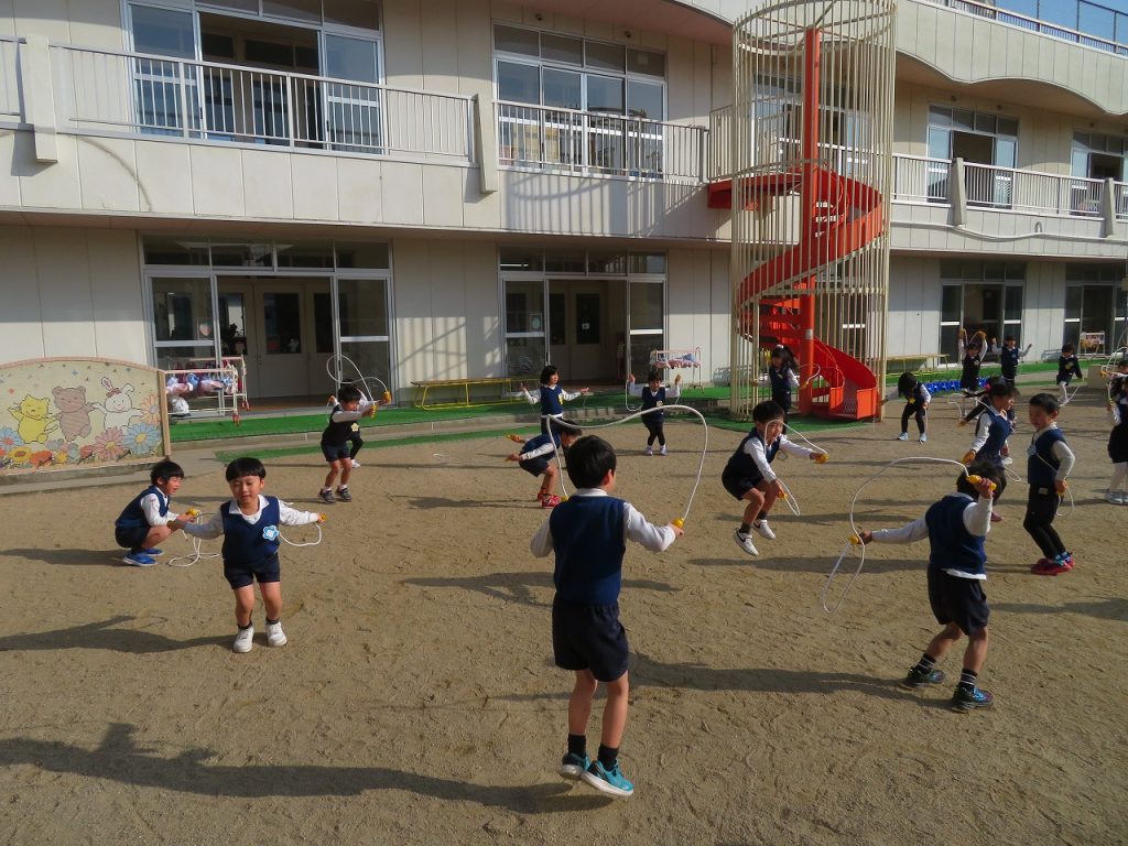 寒くなってきてから少しずつ練習を重ね、年長組さんのなわとび大会が開催されました。