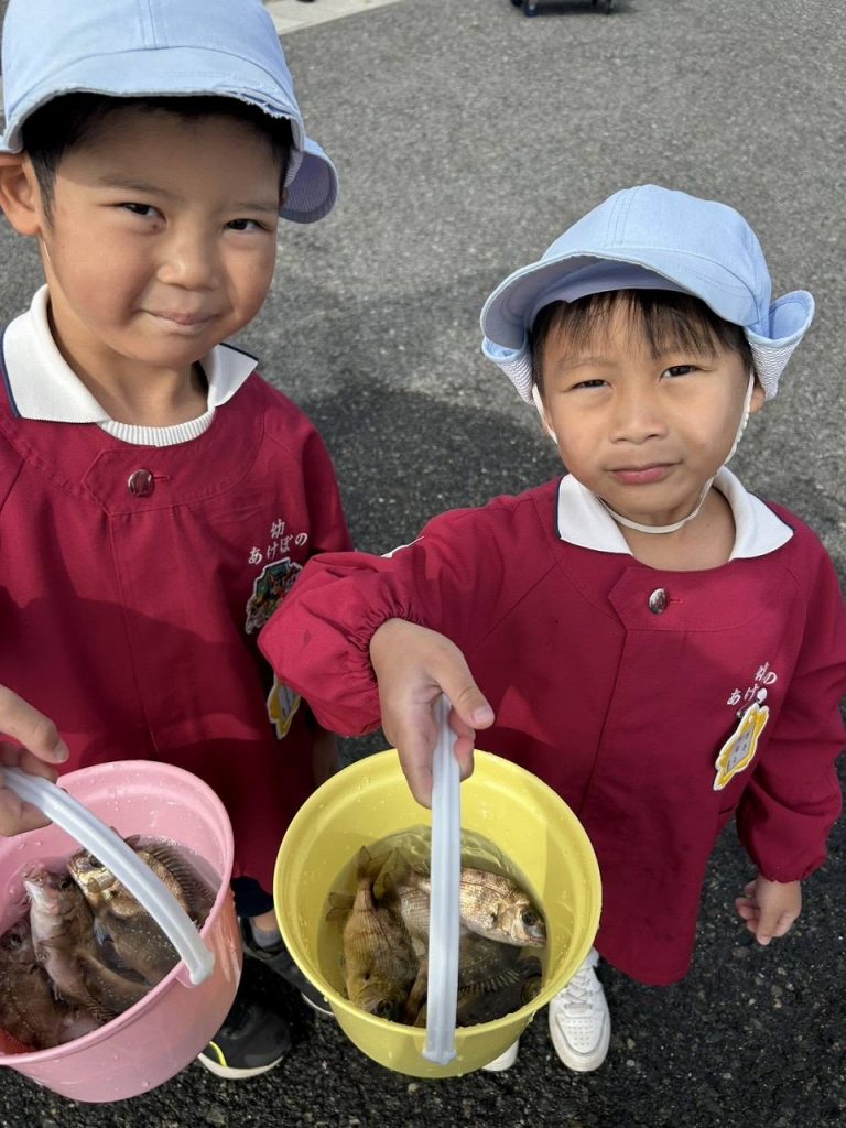 「うわぁ!ぴちぴちはねた!」「大きくなってねー!」