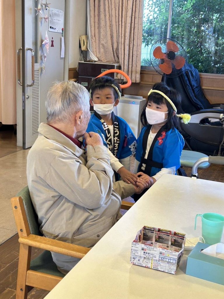 子ども達がくると手を叩いて喜んでくださる利用者のみなさんに温かく迎えられました♡