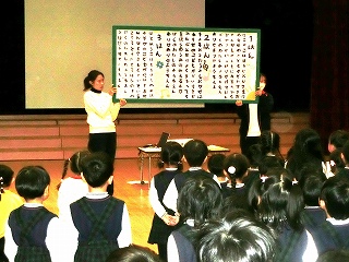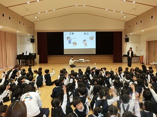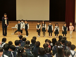 続いて、3学期の行事紹介がありました。子どもたちは何があるのか楽しみな表情を見せていました。