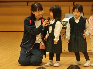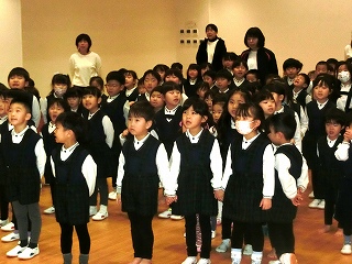 この日は、今年ずっと大切にしてきた縦割り集団で会が進められました。年長さんや年中さんが年下のお友達を見守りながら進んでいく様子が素敵でした。「ゆきだるまのちゃちゃちゃ」ではとても楽しそうにダンスしたり、「くりすますのうたがきこえてくるよ」・「えんか」では伸び伸びと歌ったりする姿が印象的でした。