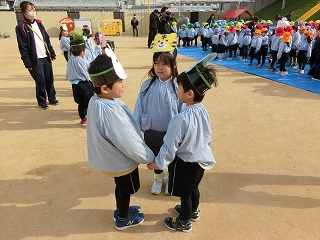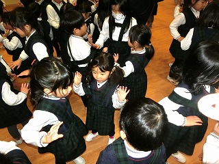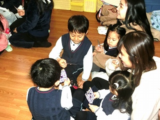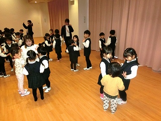 その後、両園の子どもたちが仲良くなれるようにと、「十二支の歌」を歌ったり、「雪だるまチャチャチャ」の歌と踊りを楽しんだりしました。