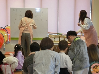 また、ビンゴゲームでは商品も用意され、親子で「リーチ」「ビンゴ」と声を出しながら、ワクワクドキドキの時間を過ごすことができました。
