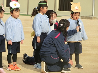 続いて、十二支の話を有瀬幼稚園と学園幼稚園の代表のお友達がしてくれました。。