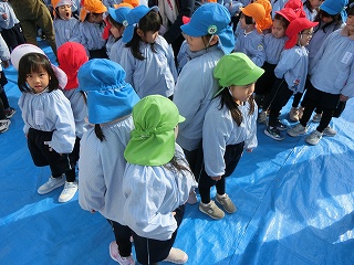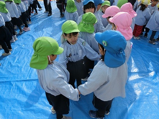 最後に、「3学期も頑張るぞー。えい、えい、おー。」と気合を入れ、グループで挨拶をして終わりました。