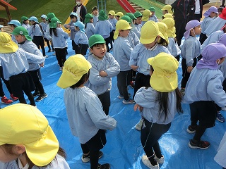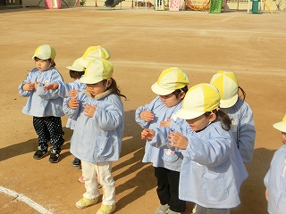 最後は、煙を浴びて、お願い事をしました。頭に浴びる子、足に浴びる子、手に浴びる子、体全体に浴びる子と一人一人が違い、しっかり願い事を意識して動いている様子がとてもよかったです。