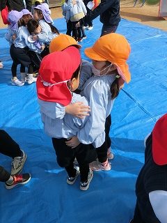 続いて、異学年のグループで歌を歌ったり、踊ったりと久しぶりの幼稚園を楽しんでいました。