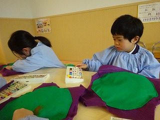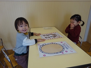 顔のパーツを色々な所に置き、面白い顔を作って遊んでいます♫福笑いをすると自然とみんな笑顔になっています😊