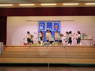 それぞれの役の特徴や表現の仕方を話し合ったり、みんなでダンスの振りを考えたりしながらアイデア盛りだくさんの劇にしました。