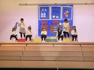 先日、生活発表会の予行演習がありました。たくさんのお客さんを前にすると、緊張もあり声が小さくなる子ども達でした。そのなかでも、今ままでの練習を思い出しながら頑張る姿が見られました。みんなで和気あいあいと話し合いながら劇遊びを楽しんでいます。また、当日はいつもと違う環境なので、緊張することと思いますが、お友達と力を合わせて一生懸命取り組む姿を応援していただければと思います(*^-^*)