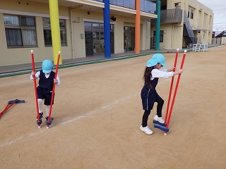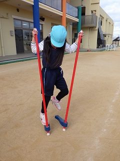 1月は正月遊びや伝承遊びにも触れてきました。戸外では、竹馬コーナーも用意しています。乗ることができるようになるまでの道のりは長いですが、めげずに取り組む姿が見られます!「乗れたらかっこいいよね💭」「2歩進めた!もっと歩けるようになりたい!」と何度もチャレンジ✨子どもたちの成長が楽しみです😊💛