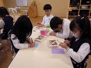 自由遊びの時間に、1日1枚の約束でお手紙を書いています。1枚を丁寧に書く事は、子どもたちにとって簡単ではありません。最後まで丁寧に、送る相手が嬉しいと思ってくれるようなお手紙に仕上げます。