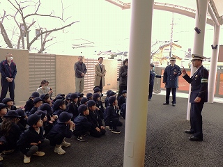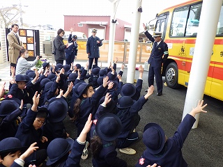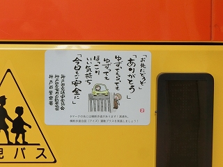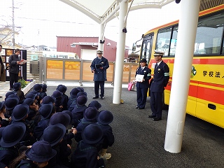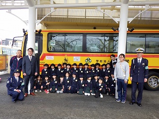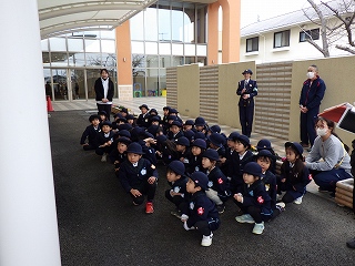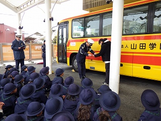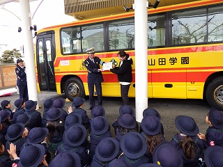 1月30日(金)に神戸西警察署からバス用の交通安全マグネットシートをいただきました。贈呈式には園児を代表して年長さんたちが出席し、西警察署の方から冬の交通安全についてお話を聞かせていただいたり、マグネットシートを頂いたりしました。いただいたシートはバスに貼り、園バスの安全な運航を継続していくことをみんなで確かめ合いました。