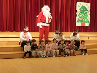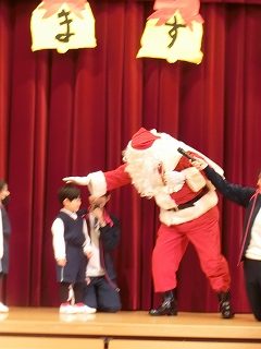 食べ終わると大ホールにみんなで集まりました。すると、なんかと幼稚園に本物のサンタクロースが来てくれたではありませんか。。