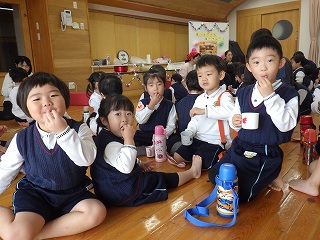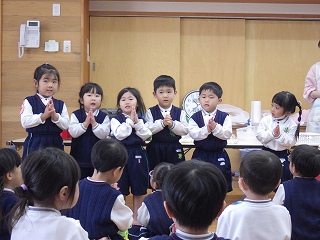 お当番さんが前に出てきてくれ、元気に「いただきます」と挨拶をしてくれました(^_^)vv