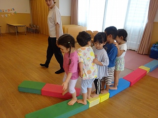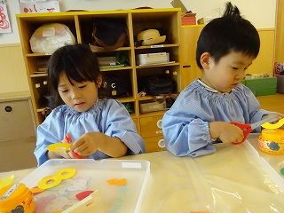9月から満3歳クラスは分級して保育を進めています。一人遊びや少人数で遊ぶ事を楽しんでいた子ども達も段々と友達と遊ぶ楽しさを感じられるようになってきました。