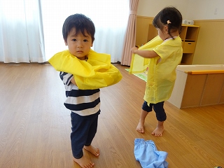 スモックの着脱や身の回りのことを自分でしようとする姿が多く見られるようになってきました!!この調子で頑張ろうね😆✨
