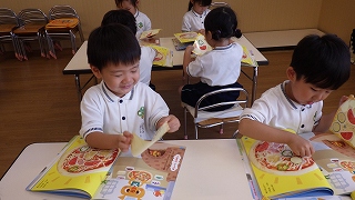 絵本を読んだあと「ピザをつくりたい!」と子どもたちからリクエストがあったので、制作をしてみることにしました。
