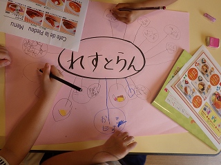 まずは、グループのお友達とどんなお店にしようかと相談です💭夏休みにお祭りへ行ったお友達からいろいろな屋台の名前があがり、そこから身近なお店の名前がたくさん出てきました!!