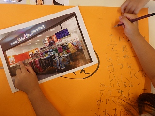 紙に何がいるか絵や文字で書き出していきました。この取り組みをしたことで作りたいもののイメージが膨らんできたようです♫😊お店の写真を見たことで友達とあれもいる!これもいる!と話し合いが盛り上がっていきました。