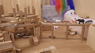 そこにジオラマも加わり、動物の王国が生まれました✨橋のようなところには動物たちが整列しています👀子どもの想像力や発想は面白いなと感じました😊💛毎日変化していく積み木コーナー✨今後も楽しみです!