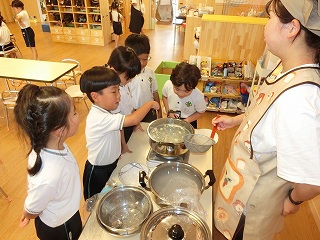 2学期に入り、新しいグループでの活動がスタートしました!!2学期はお店屋さんごっこをグループのお友達と準備して楽しもうと考えています♪