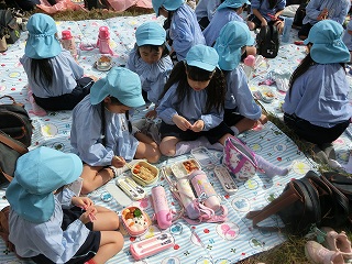 たっぷりと秋を楽しんだ後は、お待ちかねのお弁当タイムです。お腹も空いていたのでみんな完食のようでした。