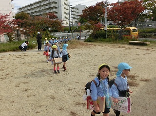 11月4日は、年長組が「秋見つけ」に出かけました。やっと秋らしい気候になり、木々も色づき始め、絶好の条件がそろった中での活動となりました。